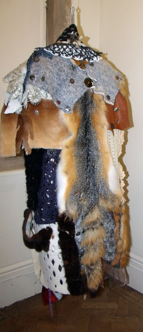 Many different materials and articles appear in the cloak, which has a very colourful interior as well, the range of fabrics perfectly reflect his wide-ranging experiencing as a designer and educator world-wide, students and colleagues and friends from practically every aspect of his life gave him wonderful and rare pieces of cloth for this coat, my favourite is a piece of lasered leather in a lace pattern – now this I could really get working on – it only I had much more of it…..