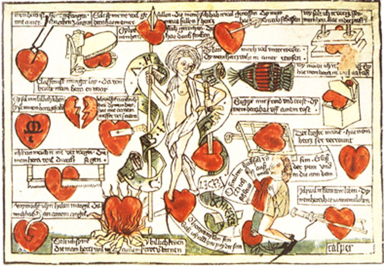 the inspirational wood cut from the Berlin Museum- Frau Minne’s way with Mens’ hearts