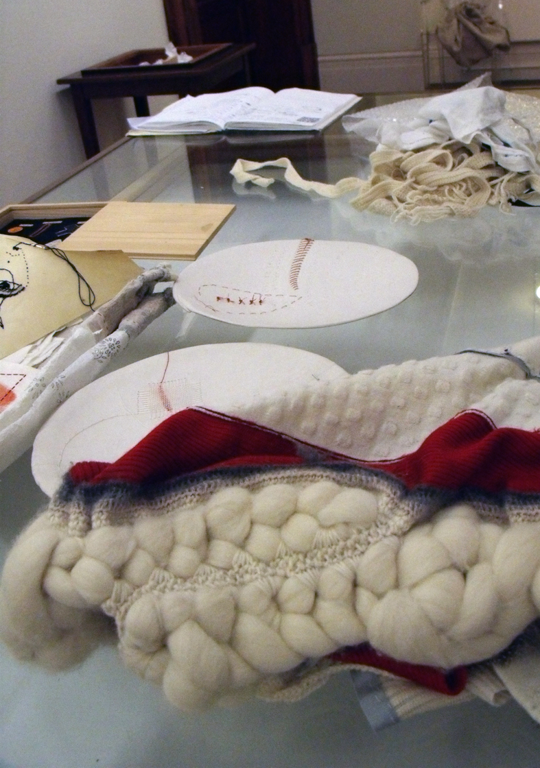 The exhibition ‘Mending at the Museum’ has finally been launched at The Bristol City Museum and Art Gallery – and it runs until April 2013….which sounds simple enough but it is the culmination of at least 3 years collaborative practice based research between academics and professional makers and artists. The ‘Stitching and Thinking’ research group, which I facilitated in my post as a senior research fellow, evolved the exhibition via a series of mixed media workshops, visits to the museum’s mended collections, many meetings, discussions, conference papers and a small sample-stage exhibition; and it also caps off my academic career which started in 1973 and finished last year in 2011….. So no pressure then.