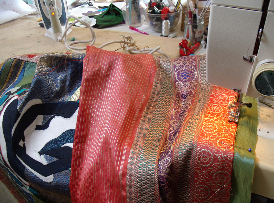 Basically the smallest detail will decide the quality of the work, how and with what can I stitch this to look its best. within the budget and the time limit? I now knew the work ahead of me, I emailed with the news and the price, roughly half the original cost – happily it was accepted and extra thrown in for the use of my beautiful metal woven antique fabrics….how good is that?