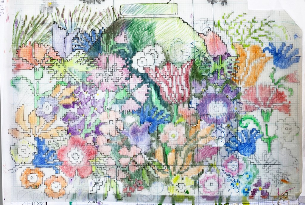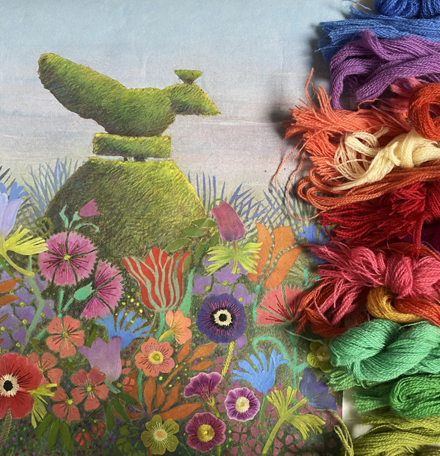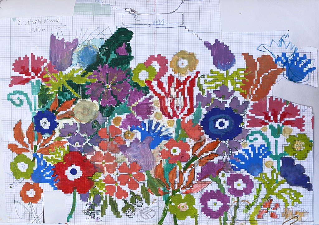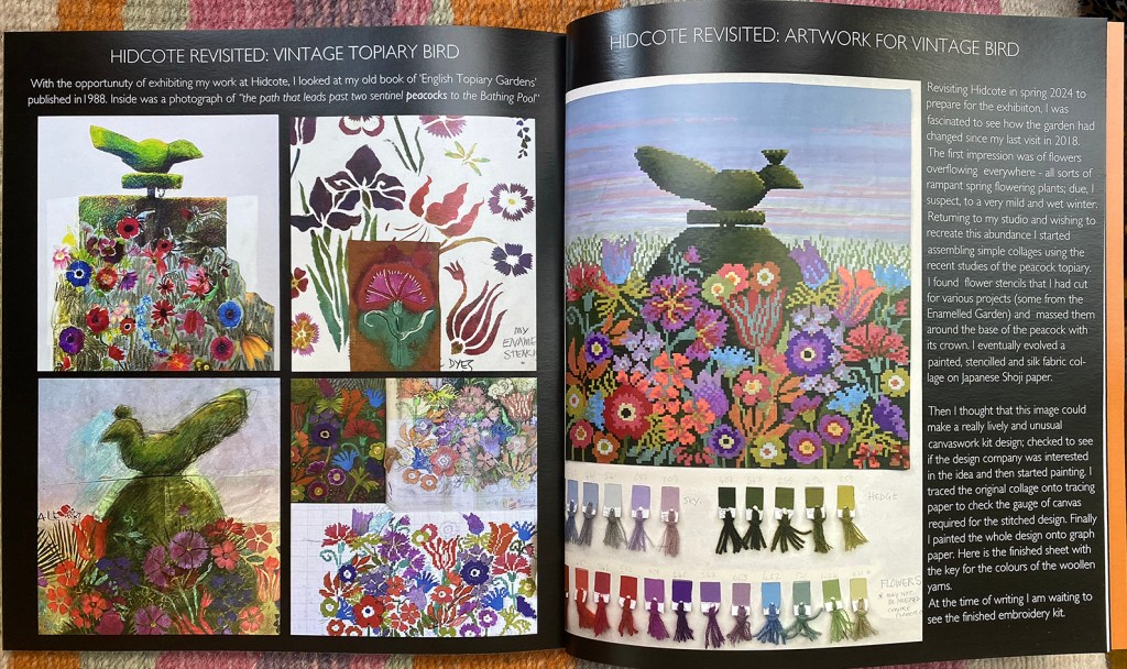 To accompany my recent exhibition at Hidcote Gardens, I produced several accompanying products: an illustrated book, Drawn to Stitch, showing the works and how I developed them. My design process can take many weeks, sometimes months to complete and usually to a deadline. I find it is of interest to people to see how my original works and ideas are developed into commercial products, this keeps my personal practice viable and refreshed. So I make no apologies for this long post……