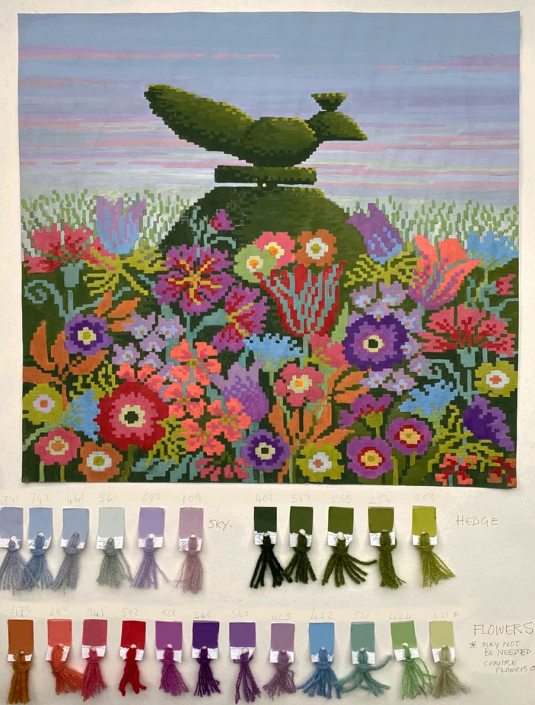 Once completed, the finished design with the yarns and their painted coloured samples are mounted and then sent to be stitched and printed and packaged……and now available for sale.