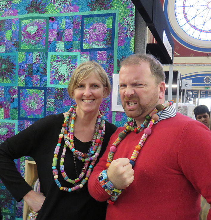 Stuart from the Sewing Bee programme and Jane- Marie Mahy with the ribbon beads – sort of says it all really!