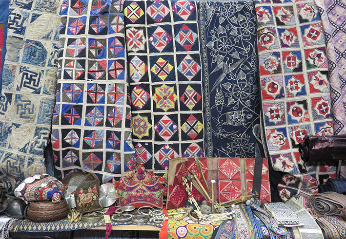 The Slow Loris stand of ethnic Chinese /Tibetan textiles
