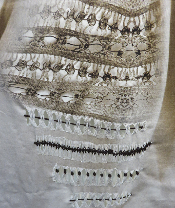 Detail of the stitched white work on the photograph